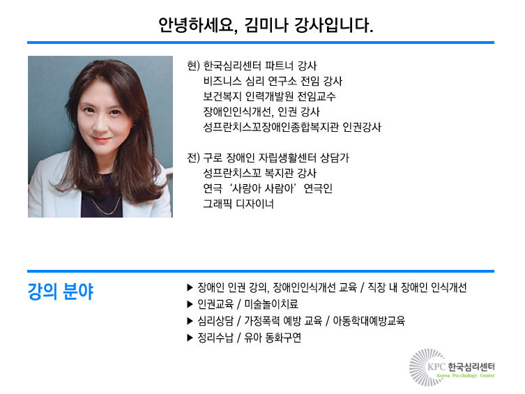 안녕하세요, 장애인 인식개선 전문강사 김미나입니다.